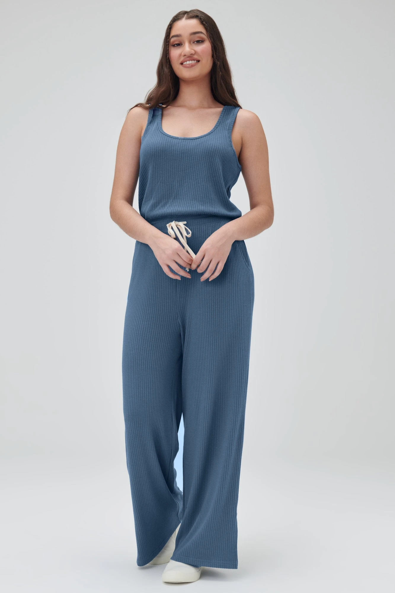 Be a girl on the go (or girl who likes to lay-low) in our new full-length Ballet Rib Wide Leg Pant jumpsuit. Created with an even more luxe Rib Hacci fabric and paired with side-seam pockets and front drawstring detail, you’ll be one & done in this one piece.