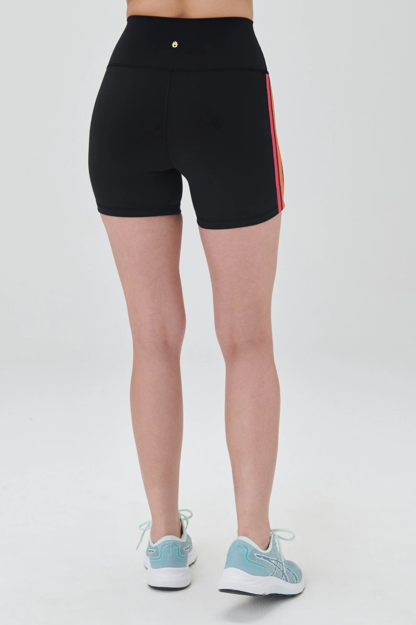 Your new favorite leggings, now in a biker short. With a vintage rainbow stripe, they’re the perfect blend of fashion and function. They’re also made from a soft blend of eco-conscious fibers, so they’re kind to the earth, too.