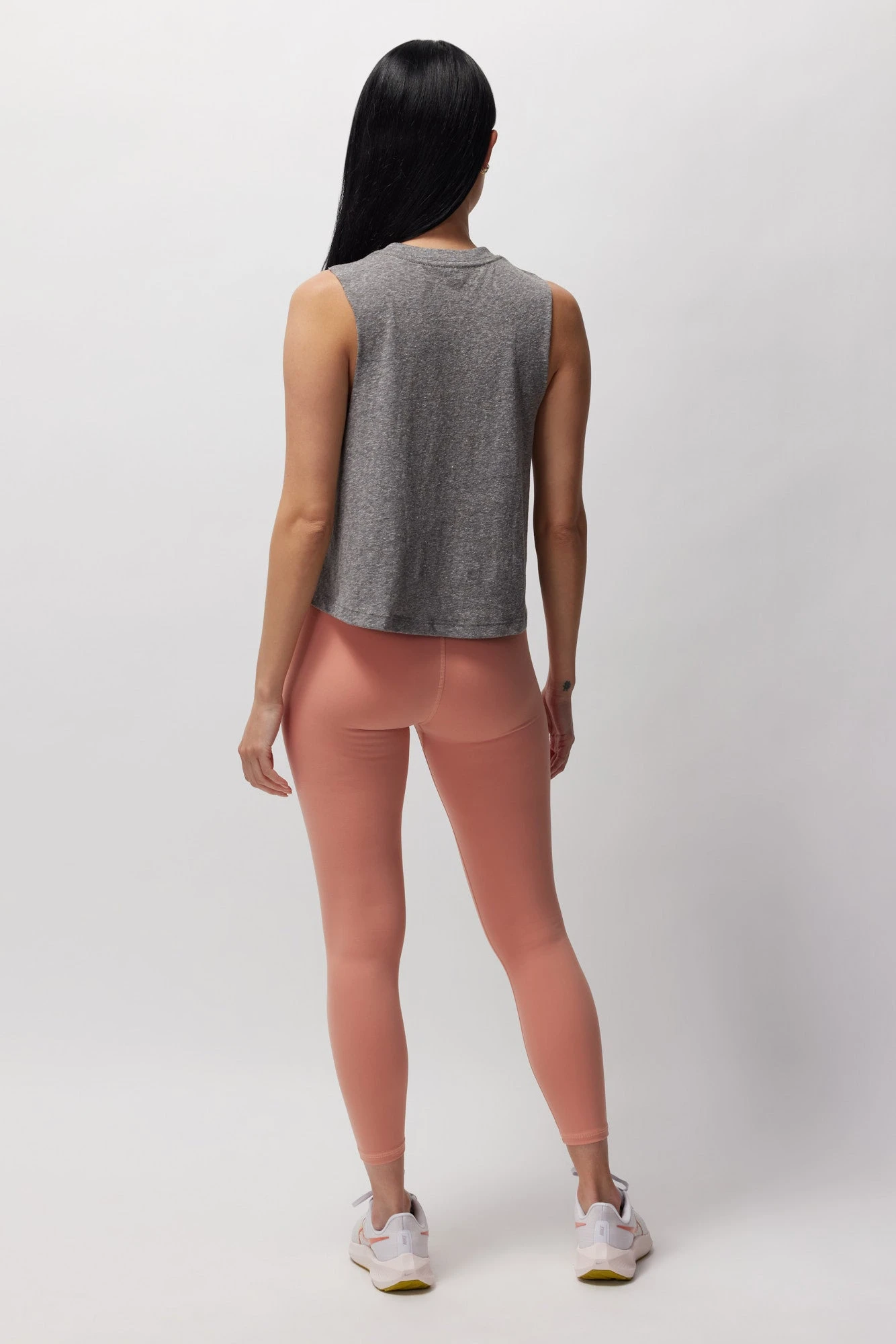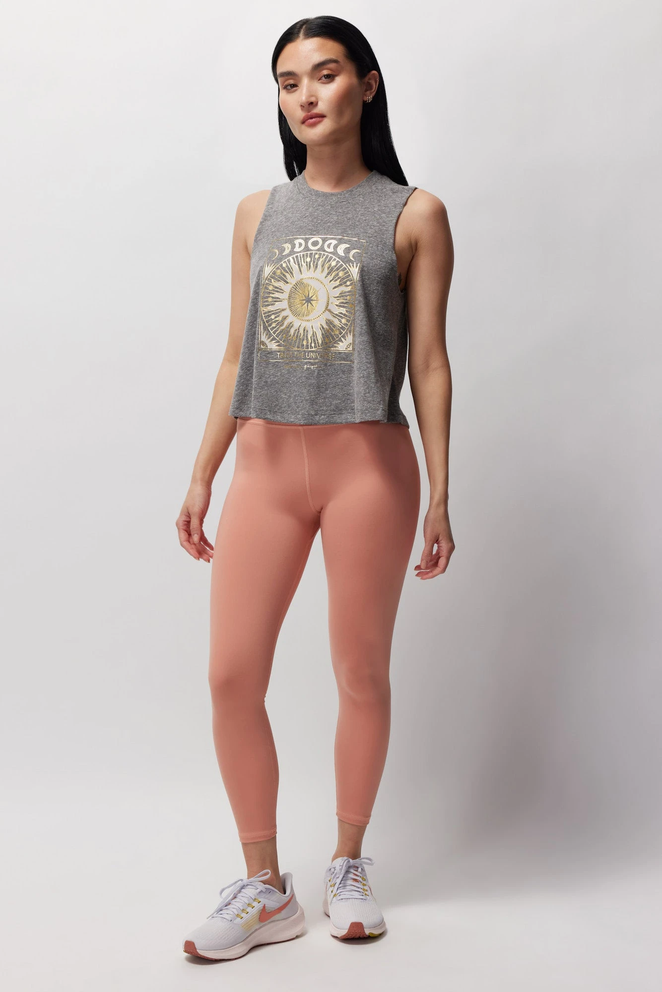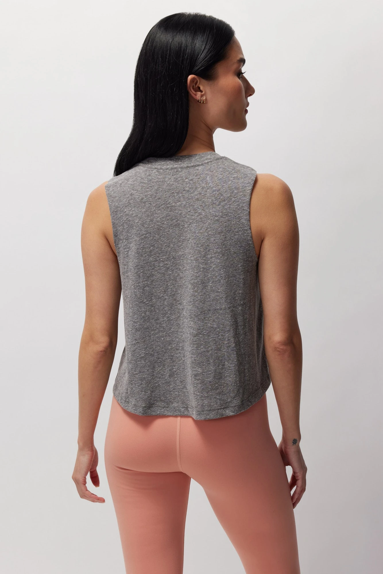 Open your heart. A time-tested muscle tank designed with a relaxed crew neck and shirt tail hem. Made with comfortable cotton and modal, this tank is features a new graphic you’ll love.