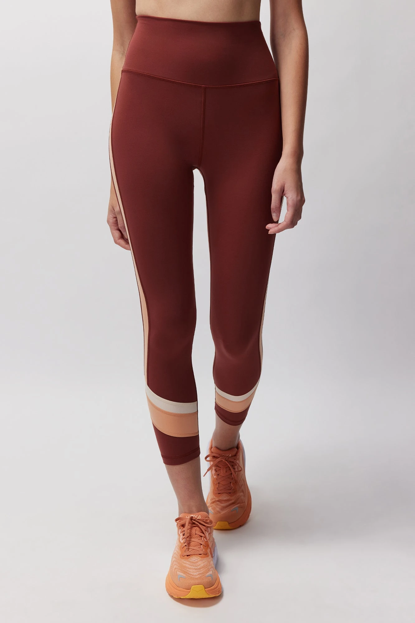 Dream on. This new legging made in our Dream Tech Eco Jersey has a high-rise, body-hugging fit, fold over waistband with no elastic, built-in hidden phone pocket at back waistband and color block panels.
